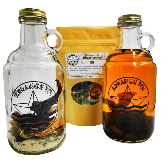 Arrange Toi est une entreprise québécoise qui propose une gamme de recettes de prêt à remplir pour rhum arrangé.